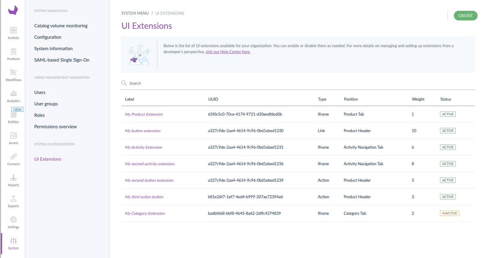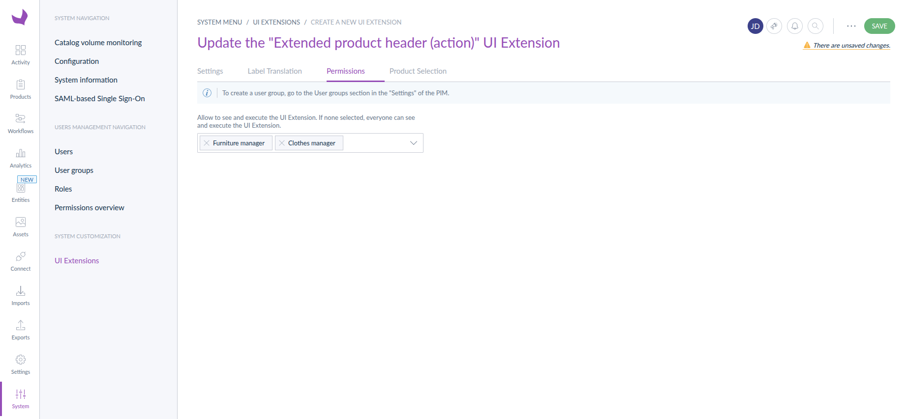 Extensions can be configured to be available only to certain user groups, specific products, or individual users.