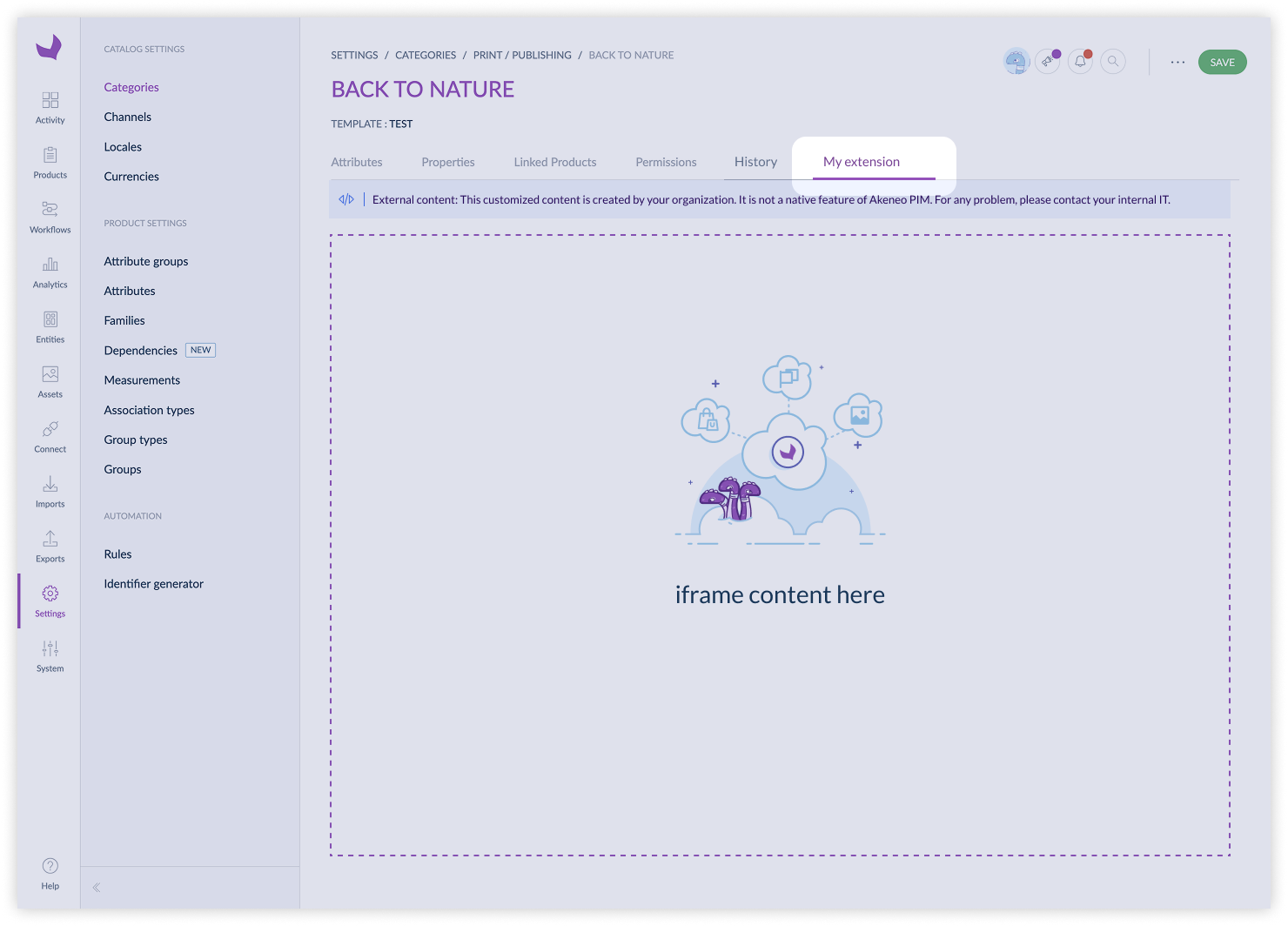 Extension position defines where your extension appears within the Akeneo PIM interface. You can select from a variety of available positions, which vary depending on the specific extension type.